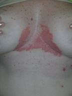 pequenas lesões localizadas, em forma de gotas, associadas a processos infecciosos. Geralmente, aparecem no tronco, braços e coxas (bem próximas aos ombros e quadril) e ocorrem com maior drequencia em crianças e adultos jovens;